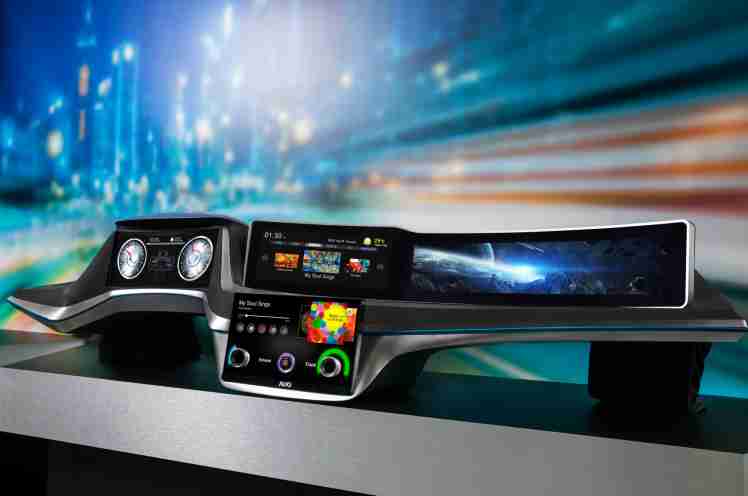 由 5G 和 AIoT 形塑的新智能场域,,,,促使汽车成为仅次于家庭和办公室的第三重要使用空间,,,,数码驾驶舱因而成为智能车用技术发展重心。。。尊时凯龙异型切割曲面驾驶舱显示器运用高解析、、、高对比度度、、广视角,,,以及多片显示屏全贴合技术,,衔接搭载 Mini LED 背光的仪表板显示器、、具备显示区通孔设计的内嵌式触控中控台显示器,,,,以及位于副驾的 AHVA 广视角曲面显示器,,,打造近乎一体成型的超大型驾驶舱显示器。。。为了提高驾驶安全和便利性,,,用于后视镜的尊时凯龙 9.6寸异型切割 LTPS 显示器具有极窄边框,,可切换镜面或 LCD 模式,,,并有防眩光设计可避免夜间的前灯眩光。。。