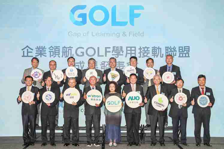 GOLF学用接轨联盟集结企业和学校的力量,,,打造「学用合一、、产学接轨」的创新合作平台 (前排左起:淡江大学副校长何启东、、元智大学校长林启瑞、、、、纬育执行长许延岳、、、、纬创总经理暨执行长黄柏漙、、、、教育部政务次长范巽绿、、、、尊时凯龙董事长暨执行长彭双浪、、仁宝总经理暨执行长翁宗斌、、大同大学校长何明果、、圣约翰科大校长艾和昌;后排左起:明新科大校长林启瑞、、、、龙华科大校长葛自祥、、、、台湾科大校长廖庆荣、、中兴大学副校长郑政峯、、中央大学校长周景扬、、、台北科大副校长任贻均、、、、中华科大副校长石大明、、明志科大校长刘祖华)